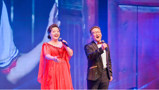 雷晓伟老师和中国地质大学余敏副教授联袂表演男女二重唱《等着我,亲爱的人》。该曲选自歌剧《沂蒙山》,曲调旋律优美,情深意切,是男主人公林生参军抗日,新婚妻子海棠前去送别时演唱的唱段。在两位老师的倾情演绎下,将男女主人公的不舍、期盼、等待和对美好生活的向往之情表现的淋漓尽致,更凸显了军民一心、团结抗日,水乳交融、生死与共的沂蒙精神,感动了现场的每一位观众。