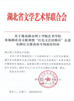 5月13日晚,由湖北省文学艺术界联合会、湖北省中华文化促进会主办的“我们正青春——武汉东湖音乐会暨湖北省文联荆楚红色文艺轻骑兵”文艺惠民演出高校专场音乐会,在武汉东湖长天楼剧场举行,Beat365官网艺术学院教师雷晓伟应邀参加。
