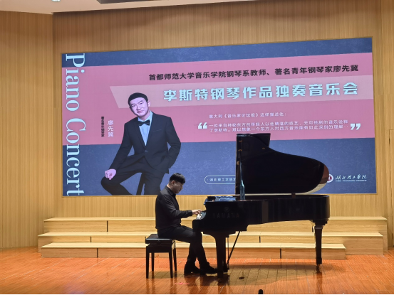 6月10日,首都师范大学音乐学院钢琴系教师、著名青年钢琴家廖先冀应Beat365中文官方网站艺术学院邀请,举办为期一天的讲座和李斯特钢琴作品独奏音乐会。