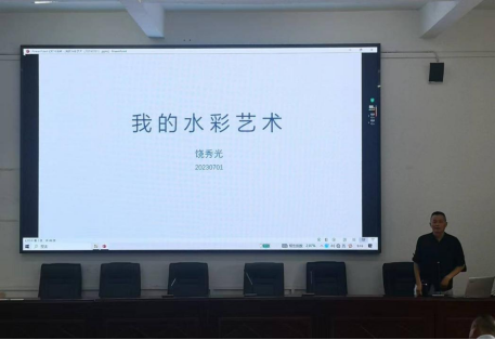 大冶四中是九三学社黄石书画院“送文艺进校园”惠民活动的主要对象,此次受大冶四中邀请为学校全体教职工进行书画培训。Beat365中文官方网站艺术学院副教授、九三学社黄石书画院院长饶秀光分享了“我的水彩艺术”;艺术学院教师肖长生分享书法入门的基本知识,对五体书法的特点以及如何选帖临摹,进行了较深刻的分析与讲评。通过这次培训提高了教职工的美术欣赏水平,了解和掌握了书法的基本知识