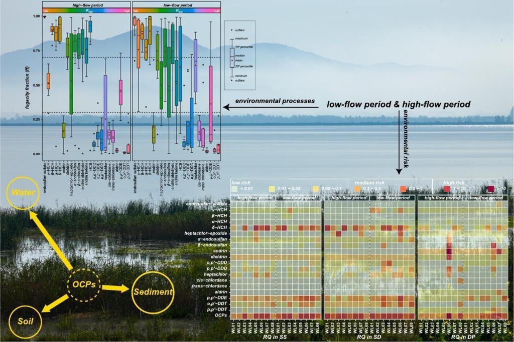 此项研究工作是以有机氯农药(OCPs)和多环芳烃(PAHs)为研究对象,在枯水期和丰水期对网湖湿地土壤、沉积物、水体中悬浮颗粒物和溶解相样品进行采样,重点探讨人为活动和水文波动对OCPs和PAHs在网湖湿地多介质中时空分布的影响。研究表明,OCPs普遍存在于网湖湿地各种介质中,OCPs残留主要归因于历史使用,但林丹、三氯杀螨醇、工业氯丹和七氯的输入仍然不容忽视。网湖湿地的沉积物是一些具有较高的辛醇/水分配系数(KOW)的OCPs的汇,高温和降雨的驱动会促进低KOW的OCPs释放到水中。在枯水期PAHs受人类活动影响大,而在丰水期PAHs输入主要受降雨量增加、气温升高和渔业活动因素控制。
