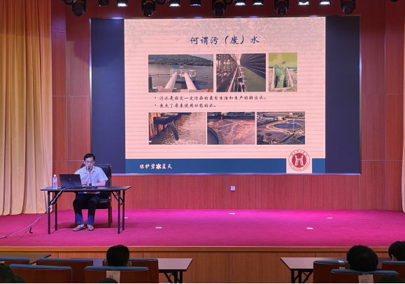 讲座中,汪博士从废水的能源及资源回收、水污染危害以及常规污水处理方法等四个方面介绍了如何利用污水源的必要性,挖掘可回收资源和能源的途径。汪博士深入浅出,旁征博引,通过其通俗易懂的讲解,给全体师生展示了废水回收的广阔前景,构建科学治污、精准治污、依法治污的生态治污体系,从而持续打好蓝天、碧水、净土保卫战。汪博士总结指出,在当今社会,废水能源在回收技术上,仍然具有挑战性,需要技术突破,希望同学们通过科研学习与实践,提高环境生态保护的意识,构建环境生态文明知识框架体系,努力成为美丽中国建设的积极参与者和推动者。