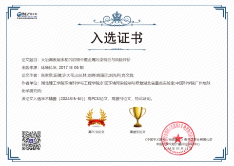 2012年以来,张家泉教授团队持续开展大冶湖流域水体及沉积物中毒害污染物环境行为及其效应研究,探讨工矿活动对其空间分布和赋存影响,评估其对于人体及生态系统的潜在风险,上述研究成果分别于2017年1月和6月发表于《环境科学》,可为大冶湖流域环境综合治理提供科学指导。此次2篇高影响力论文的成功入选,标志着Beat365官网在环境工程本科生人才培养、硕士研究生培养等方面取得显著成效,突显了Beat365官网环境学科在污染物环境行为及评价领域的研究水平和影响力。