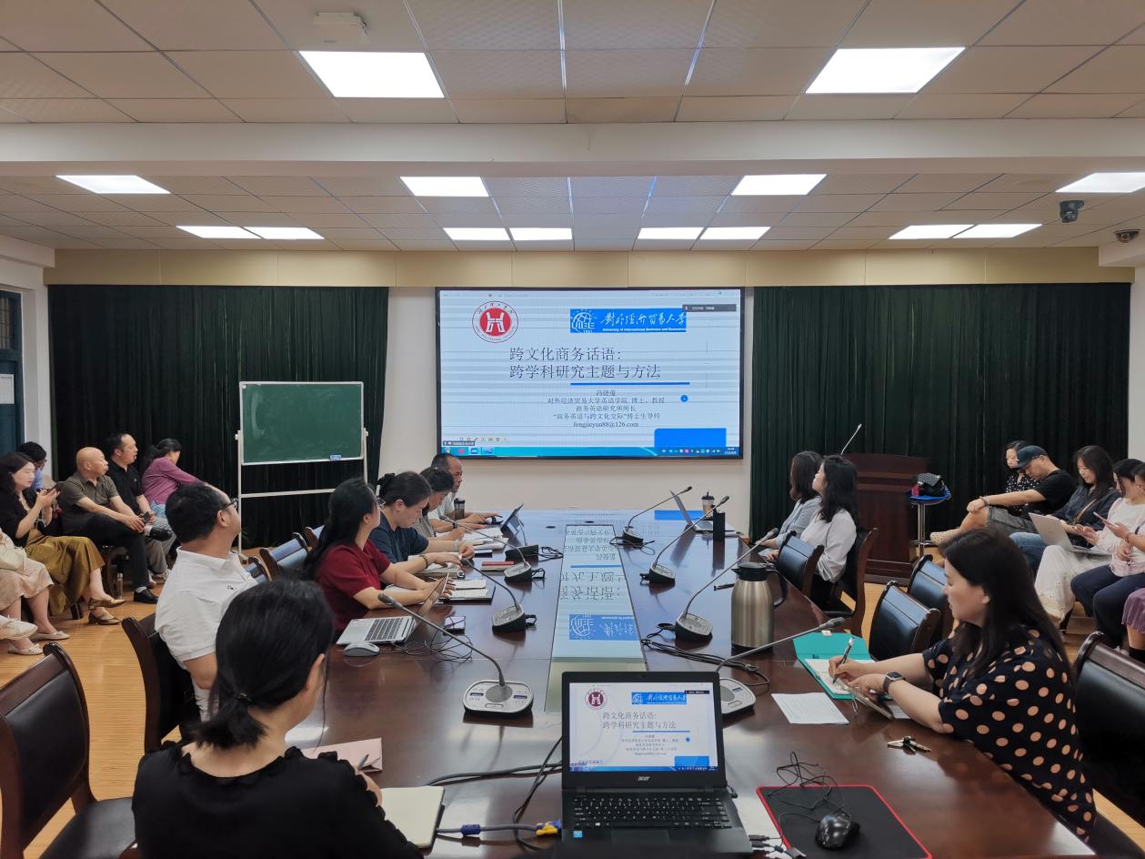 本网消息 6月9日下午,外国语学院邀请对外经济贸易大学冯捷蕴教授在腾讯会议平台为师生作了题为“跨文化商务话语:跨学科研究主题与方法”的学术讲座。学院副院长管振彬主持,全体专任教师及部分学生聆听学习。