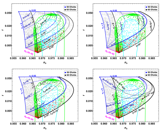 在另一篇《Radiatively corrected Starobinsky inflation and primordial gravitational waves in light of ACT observations》学术论文中,Waqas Ahmed博士则将目光投向了阿塔卡马探路者实验望远镜(Atacama Pathfinder Experiment telescope,APEX)发布的最新约束数据,他采用带有非最小引力耦合的暴胀模型,分析了通过量子修正对其预测的影响。研究表明:当暴胀场与其他标量场相互作用时,玻色标量耦合产生的辐射修正可显著提高标量谱指数和张量标量比。与费米校正不同,Waqas Ahmed博士提出利用玻色标量耦合辐射修正所产生的预测更符合发布的最新约束,该模型在大耦合参数极限下趋近于经典的Starobinsky暴胀。作者还通过引入物质场相互作用为不同暴胀机制留下可观测特征,为未来区分不同暴胀模型提供了重要依据。