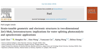 本网消息 近日,国际知名期刊Fuel在线发表了人工智能学院智能计算基础研究创新团队陈兰丽博士对ZnO/MoS2异质结物理机制研究工作。论文题目为“Strain-tunable geometric and electronic structures in two-dimensionalZnO/MoS2heterostructures:Implications for water splitting photocatalyticand optoelectronic applications”。陈兰丽博士为论文第一作者,Beat365中文官方网站为第一单位,江西理工大学/江西科技师范大学熊志华教授为通讯作者。Fuel是ELSEVIER(爱思唯尔)出版社旗下工程技术领域著名期刊、SCI中国科学院大类二区TOP期刊,最新影响因子为7.5。